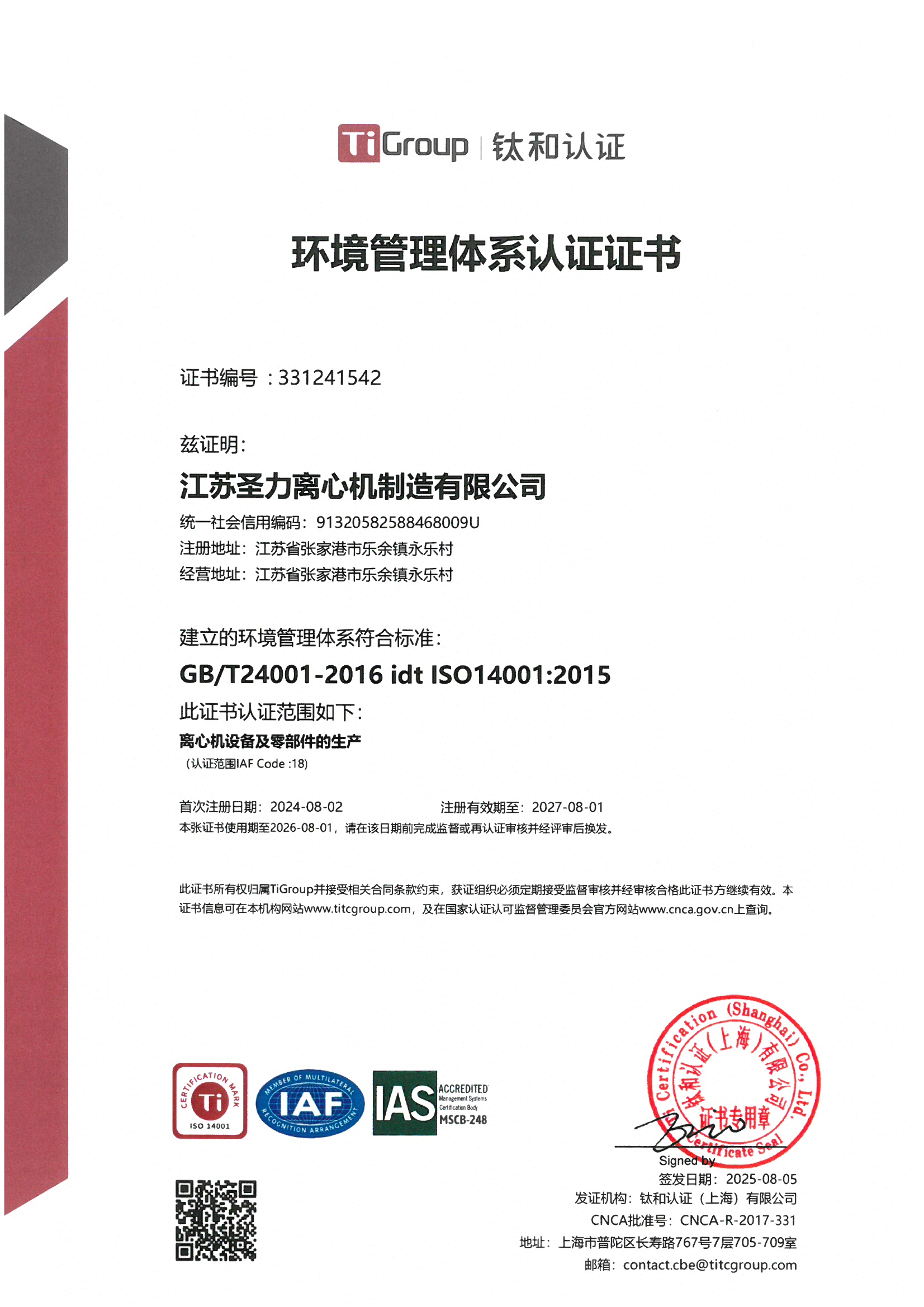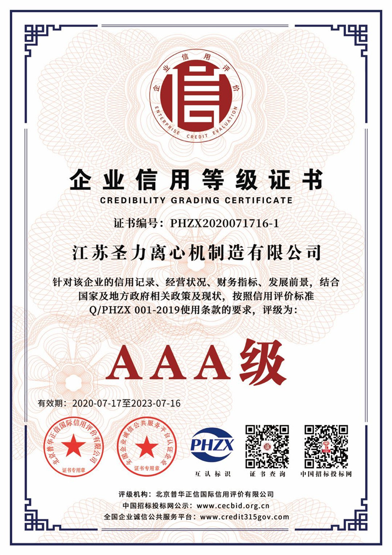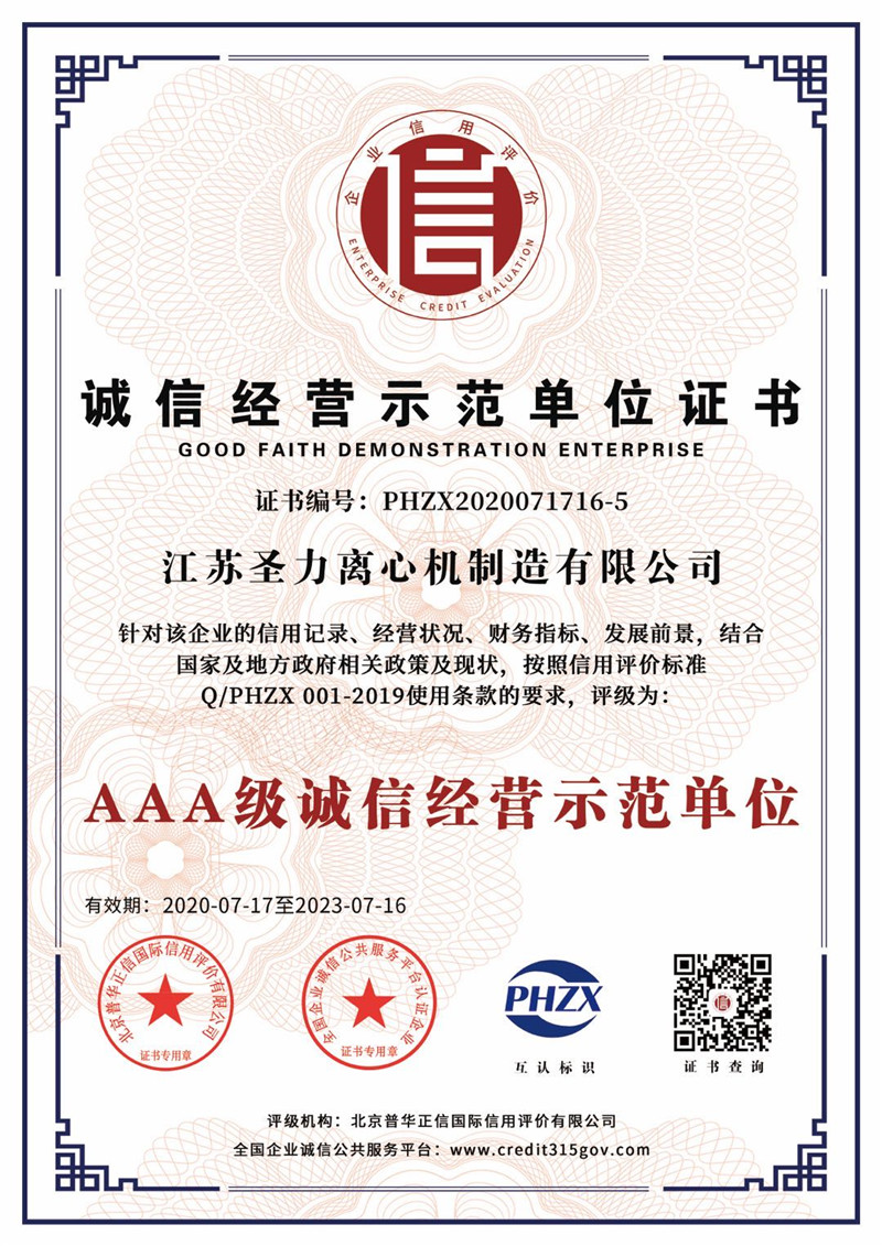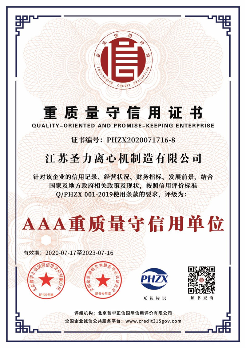 江蘇圣力離心機(jī)制造有限公司是國內(nèi)分離機(jī)械行業(yè)中主要的離心機(jī)生產(chǎn)企業(yè),對離心機(jī)的研究、設(shè)計(jì)、制造有多年的歷史,擁有齊全的設(shè)備、完善的檢測手段。公司已通過IS09000國際質(zhì)量體系認(rèn)證、ISO14001環(huán)境管理體系認(rèn)證、ISO45001:2018職業(yè)健康安全管理體系認(rèn)證和CE認(rèn)證,是江蘇省高新技術(shù)企業(yè),曾榮獲國家和地方多項(xiàng)榮譽(yù)稱號(hào)。